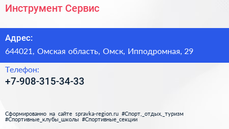 Инструмент-Сервис по адресу 644021, Омская область, Омск, Ипподромная, 29 в дальнейшем Организация, размещена в следующих категориях: