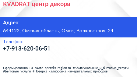KVADRAT, центр декора по адресу 644122, Омская область, Омск, Волховстроя, 24 в дальнейшем Организация, размещена в следующих категориях: