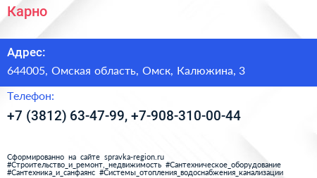 Карно по адресу 644005, Омская область, Омск, Калюжина, 3 в дальнейшем Организация, размещена в следующих категориях: