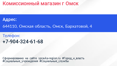 Комиссионный магазин, г. Омск по адресу 644110, Омская область, Омск, Бархатовой, 4 в дальнейшем Организация, размещена в следующих категориях: