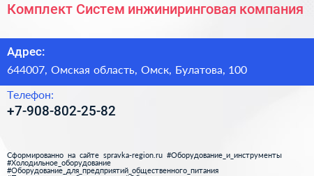 Комплект Систем, инжиниринговая компания по адресу 644007, Омская область, Омск, Булатова, 100 в дальнейшем Организация, размещена в следующих категориях: