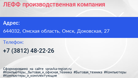 ЛЕФФ, производственная компания по адресу 644032, Омская область, Омск, Доковская, 27 в дальнейшем Организация, размещена в следующих категориях: