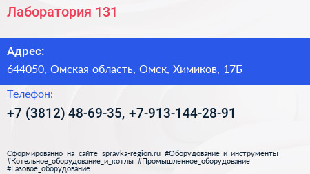 Лаборатория-131 по адресу 644050, Омская область, Омск, Химиков, 17Б в дальнейшем Организация, размещена в следующих категориях: