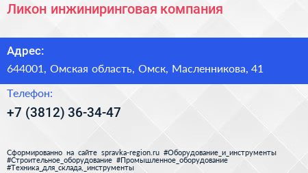 Ликон, инжиниринговая компания по адресу 644001, Омская область, Омск, Масленникова, 41 в дальнейшем Организация, размещена в следующих категориях: