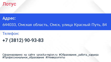 Лотус по адресу 644033, Омская область, Омск, улица Красный Путь, 84 в дальнейшем Организация, размещена в следующих категориях: