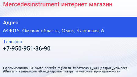 Mercedesinstrument, интернет-магазин по адресу 644015, Омская область, Омск, Ключевая, 6 в дальнейшем Организация, размещена в следующих категориях: