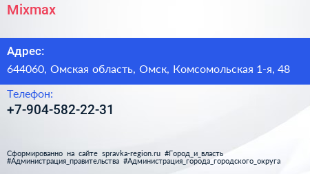 Mixmax по адресу 644060, Омская область, Омск, Комсомольская 1-я, 48 в дальнейшем Организация, размещена в следующих категориях: