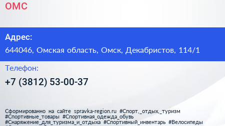 ОМС по адресу 644046, Омская область, Омск, Декабристов, 114/1 в дальнейшем Организация, размещена в следующих категориях: