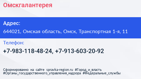 Омскгалантерея по адресу 644021, Омская область, Омск, Транспортная 1-я, 11 в дальнейшем Организация, размещена в следующих категориях: