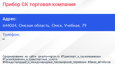 Прибор-СК, торговая компания по адресу 644024, Омская область, Омск, Учебная, 79 в дальнейшем Организация, размещена в следующих категориях: