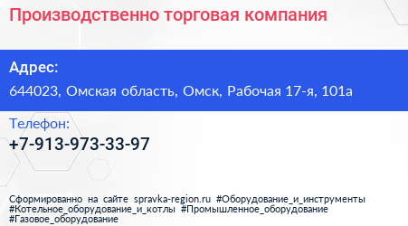 Производственно-торговая компания по адресу 644023, Омская область, Омск, Рабочая 17-я, 101а в дальнейшем Организация, размещена в следующих категориях: