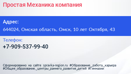 Простая Механика, компания по адресу 644024, Омская область, Омск, 10 лет Октября, 43 в дальнейшем Организация, размещена в следующих категориях: