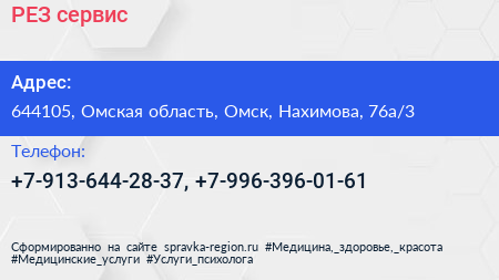 РЕЗ сервис по адресу 644105, Омская область, Омск, Нахимова, 76а/3 в дальнейшем Организация, размещена в следующих категориях: