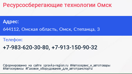 Ресурсосберегающие технологии-Омск по адресу 644112, Омская область, Омск, Степанца, 3 в дальнейшем Организация, размещена в следующих категориях: