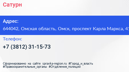 Сатурн по адресу 644042, Омская область, Омск, проспект Карла Маркса, 41 в дальнейшем Организация, размещена в следующих категориях: