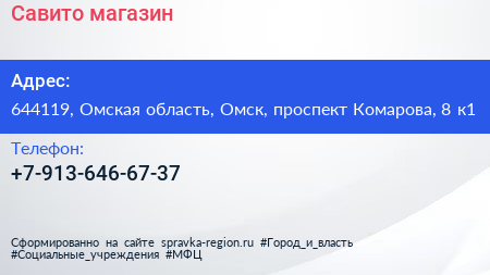 Савито, магазин по адресу 644119, Омская область, Омск, проспект Комарова, 8 к1 в дальнейшем Организация, размещена в следующих категориях: