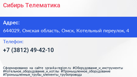Сибирь Телематика по адресу 644029, Омская область, Омск, Котельный переулок, 4 в дальнейшем Организация, размещена в следующих категориях: