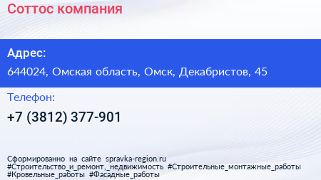 Соттос, компания по адресу 644024, Омская область, Омск, Декабристов, 45 в дальнейшем Организация, размещена в следующих категориях: