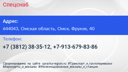 Спецснаб по адресу 644043, Омская область, Омск, Фрунзе, 40 в дальнейшем Организация, размещена в следующих категориях: