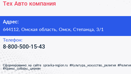 Тех-Авто, компания по адресу 644112, Омская область, Омск, Степанца, 3/1 в дальнейшем Организация, размещена в следующих категориях: