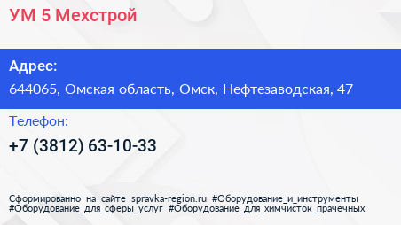 УМ-5 Мехстрой по адресу 644065, Омская область, Омск, Нефтезаводская, 47 в дальнейшем Организация, размещена в следующих категориях:
