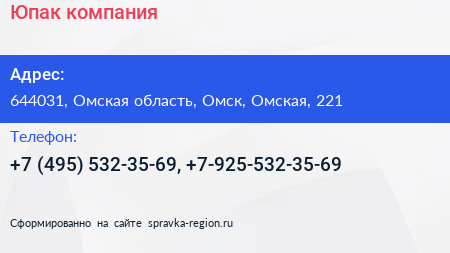 Юпак, компания по адресу 644031, Омская область, Омск, Омская, 221 в дальнейшем Организация, размещена в следующих категориях: