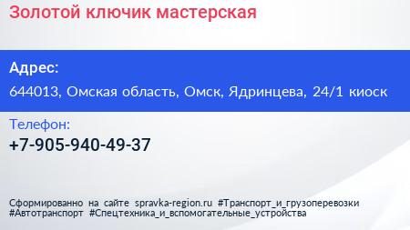 Золотой ключик, мастерская по адресу 644013, Омская область, Омск, Ядринцева, 24/1 киоск в дальнейшем Организация, размещена в следующих категориях:
