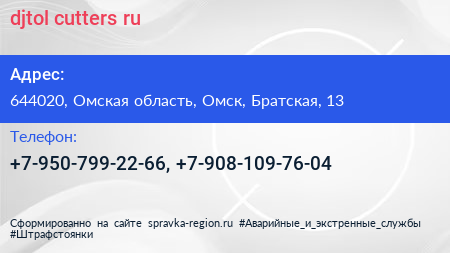 djtol-cutters.ru по адресу 644020, Омская область, Омск, Братская, 13 в дальнейшем Организация, размещена в следующих категориях: