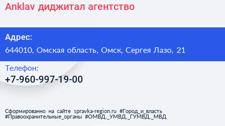 Anklav, диджитал-агентство по адресу 644010, Омская область, Омск, Сергея Лазо, 21 в дальнейшем Организация, размещена в следующих категориях: