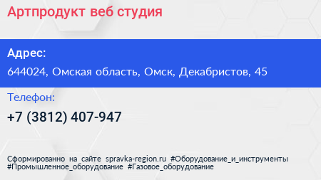 Артпродукт, веб-студия по адресу 644024, Омская область, Омск, Декабристов, 45 в дальнейшем Организация, размещена в следующих категориях: