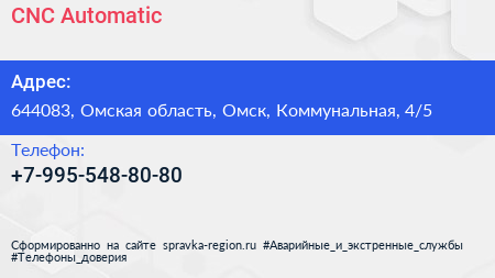 CNC Automatic по адресу 644083, Омская область, Омск, Коммунальная, 4/5 в дальнейшем Организация, размещена в следующих категориях: