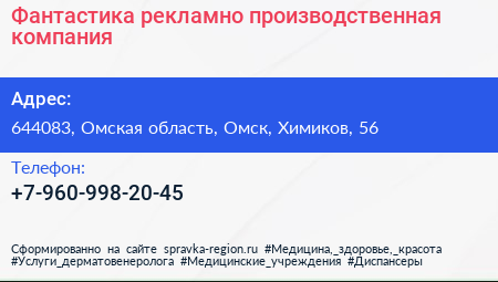 Фантастика, рекламно-производственная компания по адресу 644083, Омская область, Омск, Химиков, 56 в дальнейшем Организация, размещена в следующих категориях: