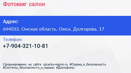 Фотомиг, салон по адресу 644033, Омская область, Омск, Долгирева, 17 в дальнейшем Организация, размещена в следующих категориях: