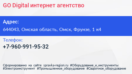 GO Digital, интернет-агентство по адресу 644043, Омская область, Омск, Фрунзе, 1 к4 в дальнейшем Организация, размещена в следующих категориях: