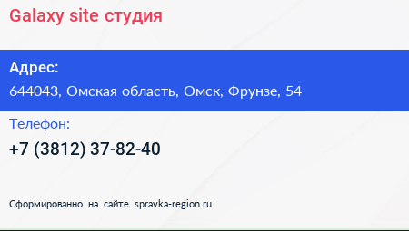 Galaxy-site, студия по адресу 644043, Омская область, Омск, Фрунзе, 54 в дальнейшем Организация, размещена в следующих категориях: