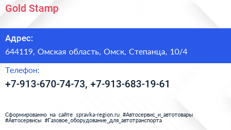 Gold Stamp по адресу 644119, Омская область, Омск, Степанца, 10/4 в дальнейшем Организация, размещена в следующих категориях: