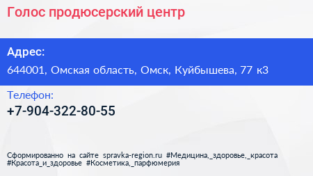 Голос, продюсерский центр по адресу 644001, Омская область, Омск, Куйбышева, 77 к3 в дальнейшем Организация, размещена в следующих категориях: