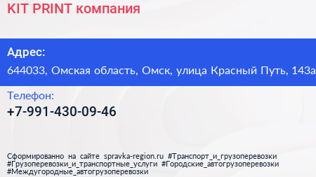 KIT PRINT, компания по адресу 644033, Омская область, Омск, улица Красный Путь, 143а в дальнейшем Организация, размещена в следующих категориях: