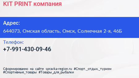 KIT PRINT, компания по адресу 644073, Омская область, Омск, Солнечная 2-я, 46Б в дальнейшем Организация, размещена в следующих категориях: