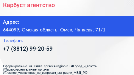 Карбуст, агентство по адресу 644099, Омская область, Омск, Чапаева, 71/1 в дальнейшем Организация, размещена в следующих категориях: