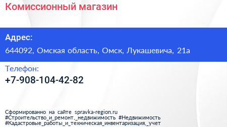 Комиссионный магазин по адресу 644092, Омская область, Омск, Лукашевича, 21а в дальнейшем Организация, размещена в следующих категориях: