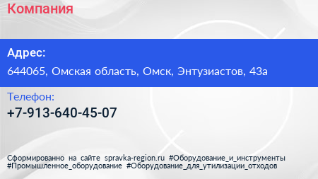 Компания по адресу 644065, Омская область, Омск, Энтузиастов, 43а в дальнейшем Организация, размещена в следующих категориях: