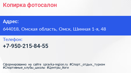 Копирка, фотосалон по адресу 644018, Омская область, Омск, Шинная 1-я, 48 в дальнейшем Организация, размещена в следующих категориях: