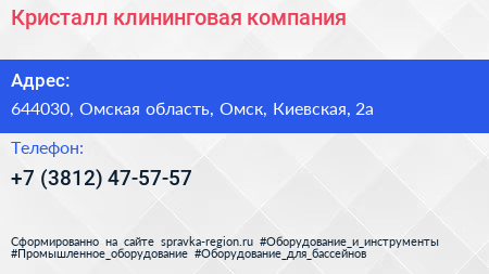 Кристалл, клининговая компания по адресу 644030, Омская область, Омск, Киевская, 2а в дальнейшем Организация, размещена в следующих категориях: