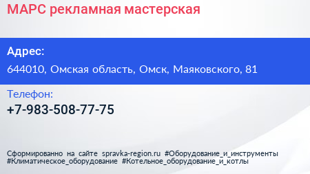МАРС, рекламная мастерская по адресу 644010, Омская область, Омск, Маяковского, 81 в дальнейшем Организация, размещена в следующих категориях: