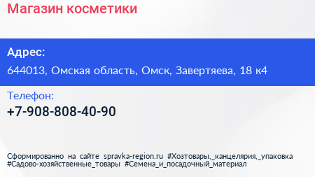 Магазин косметики по адресу 644013, Омская область, Омск, Завертяева, 18 к4 в дальнейшем Организация, размещена в следующих категориях: