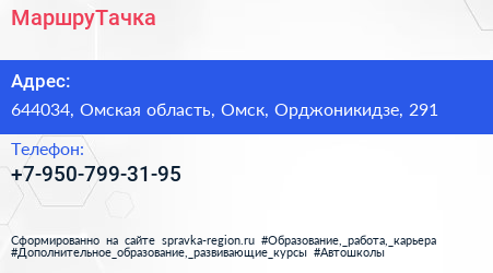 МаршруТачка по адресу 644034, Омская область, Омск, Орджоникидзе, 291 в дальнейшем Организация, размещена в следующих категориях: