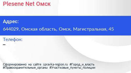 Plesene.Net Омск по адресу 644029, Омская область, Омск, Магистральная, 45 в дальнейшем Организация, размещена в следующих категориях:
