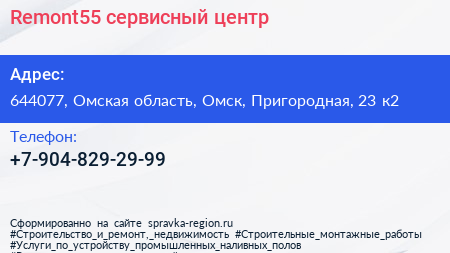 Remont55, сервисный центр по адресу 644077, Омская область, Омск, Пригородная, 23 к2 в дальнейшем Организация, размещена в следующих категориях: