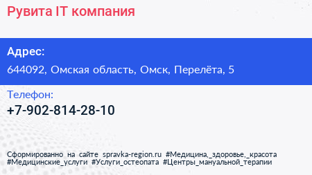 Рувита, IT-компания по адресу 644092, Омская область, Омск, Перелёта, 5 в дальнейшем Организация, размещена в следующих категориях: